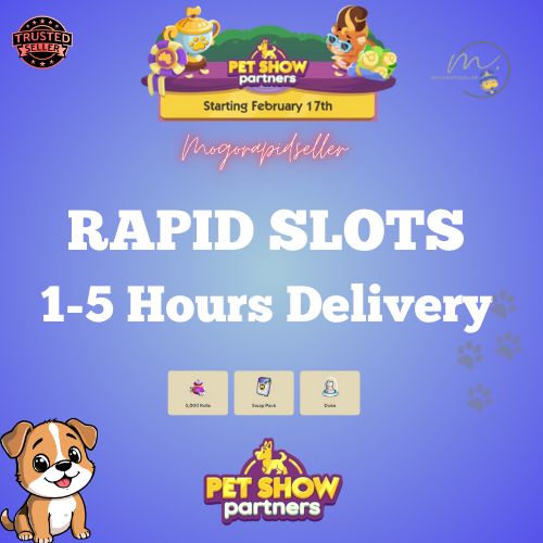 MONOPOLY GO PET SHOW PARTNER EVENT!! – RUSH SLOT 1-5 hours
